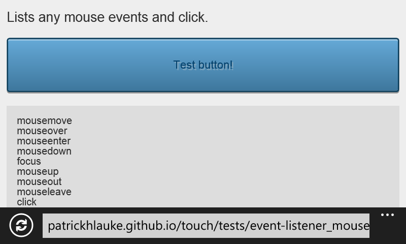 So ähnlich wie es auch in Chrome, Safari, Firefox und co. der Fall ist, werden bei einem »Tap« die folgenden Events abgefeuert: