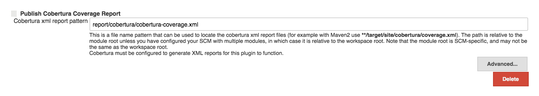 Daraufhin können wir in der Konfigurationsmaske wiederum angeben, wo wir den Cobertura Report von unserem Grunt Task haben ablegen lassen.