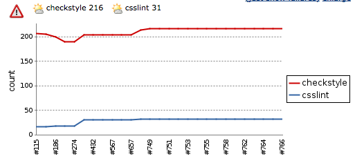 Auch hier lagern wir die Regelkonfiguration wie beim JSHint Task in eine .csslintrc-Regeldatei aus. Eine Liste der Konfigurationsoptionen für CSS Lint findet ihr hier. Zudem geben wir noch an, dass das Ergebnis unseres CI-Tasks (und wiederum nicht des DEV-Tasks) als XML-Dokument persistiert werden soll, dies geschieht in der Konfiguration des formatters. Zu guter letzt erweitern wir unseren build:ci Task um die Anweisung, unseren CSS-Lint-Task auszuführen: