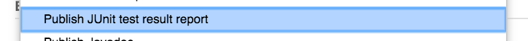 Möchten wir nun die Ergebnisse von Jenkins auswerten lassen, können wir eine weitere »Post-build action« auswählen: »Publish JUnit test result report«.