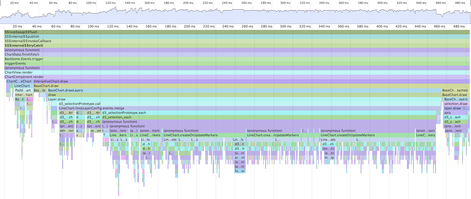 Die mathematischen Berechnungen, die für die üblichen Visualisierungen nötig sind, sind angesichts der Fähigkeiten der heutigen JavaScript-Engines zu vernachlässigen. Sie machen nur einen geringen Anteil an der Zeit aus, die für das Rendern einer Visualisierung benötigt wird. Bibliotheken zur Datenverarbeitung wie D3.js oder Underscore/Lo-Dash sind bereits auf Performance optimiert – sie müssen natürlich vorausschauend genutzt werden.